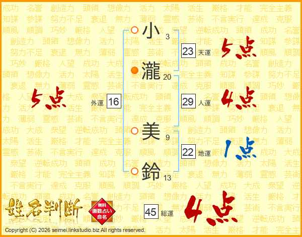 小瀧美鈴さんの総運は45画の4点!