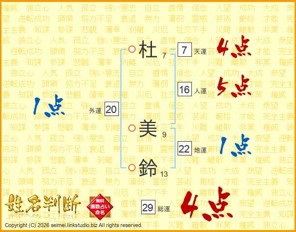 杜美鈴さんの総運は29画の4点!