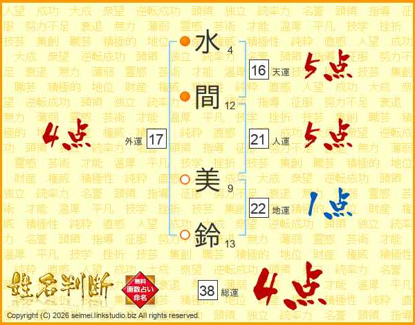 水間美鈴さんの総運は38画の4点!