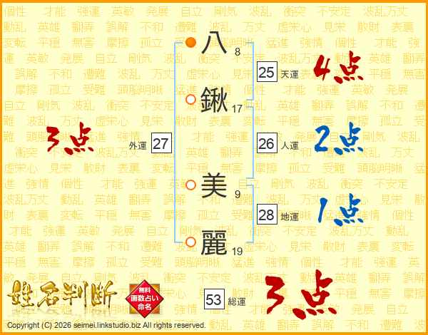 八鍬美麗さんの総運は53画の3点!