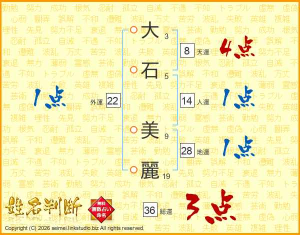 大(3画)石(5画) 美(9画)麗(19画)