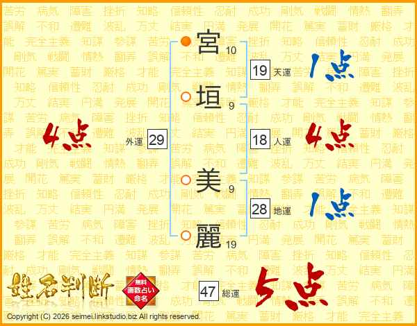 宮垣美麗さんの総運は47画の5点!