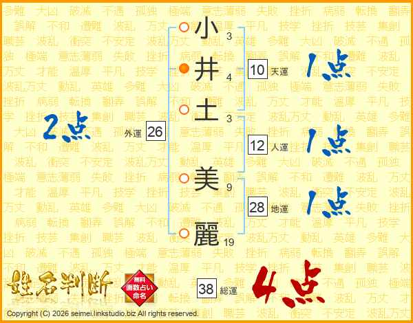 小(3画)井(4画)土(3画) 美(9画)麗(19画)