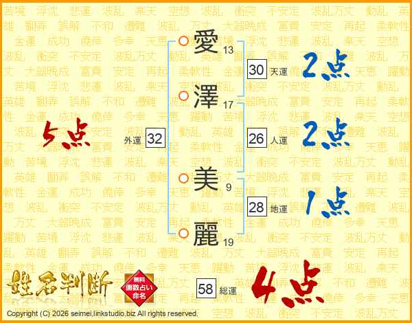 愛澤美麗さんの総運は58画の4点!