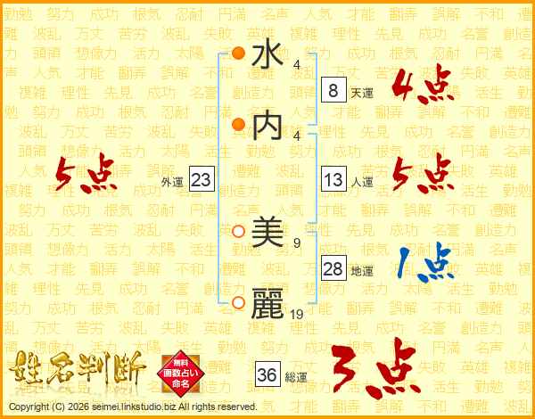 水内美麗さんの人運は13画の5点!