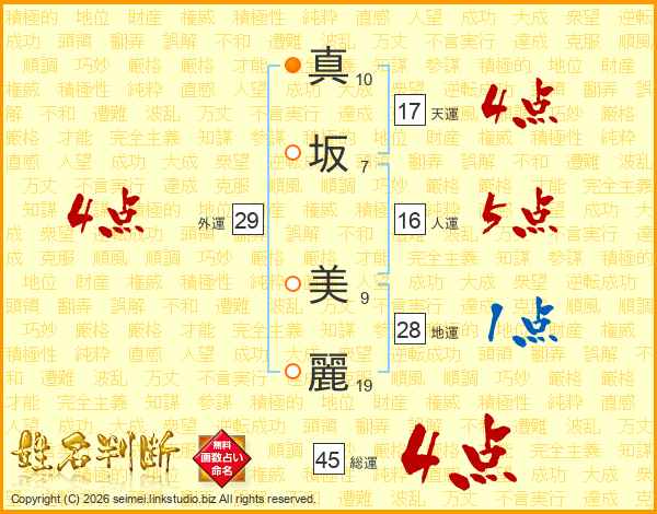 真坂美麗さんの天運は17画の4点!