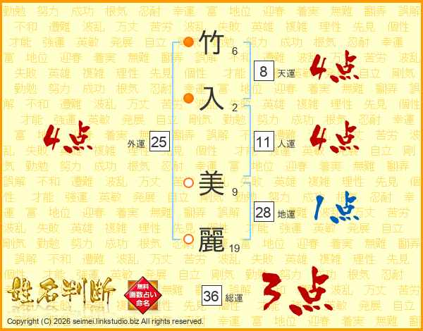 竹入美麗さんの外運は25画の4点!