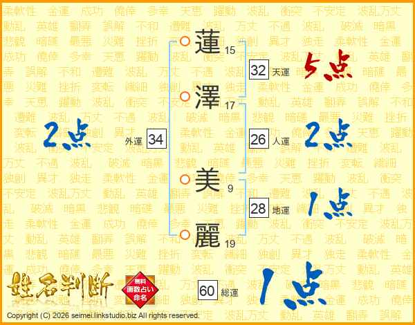 蓮澤美麗さんの人運は26画の2点!