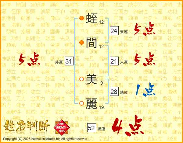 蛭間美麗さんの総運は52画の4点!