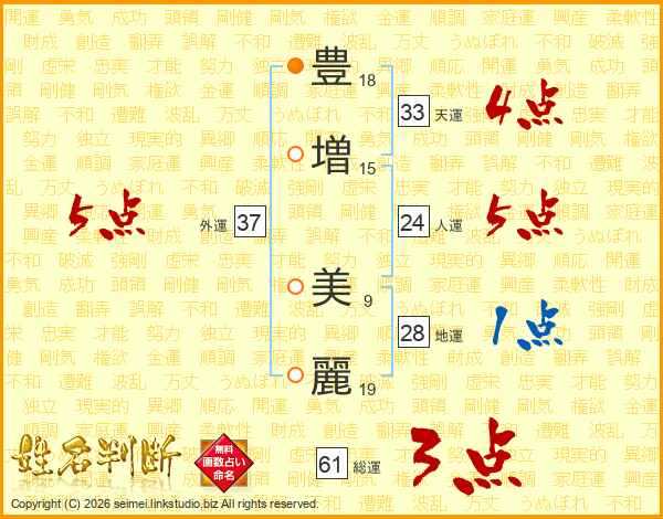 金運 順調 家庭運 興産 柔軟性 財成 創造