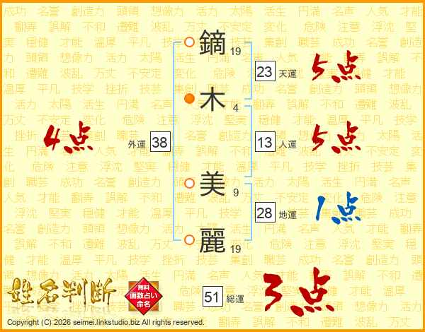 鏑(19画)木(4画) 美(9画)麗(19画)