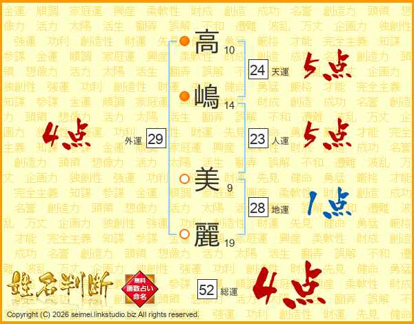 高嶋美麗さんの総運は52画の4点!