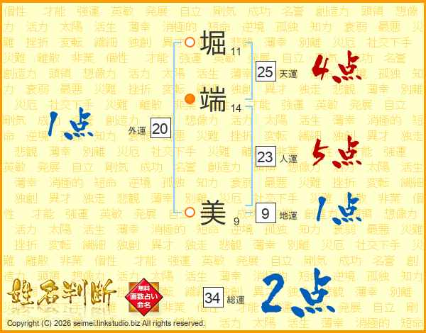 堀端美さんの天運は25画の4点!