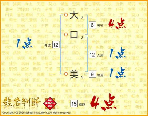 大口美さんの総運は15画の4点!