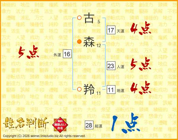 古森羚さんの総運は28画の1点!