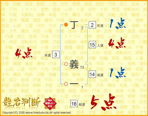 丁義一さんの総運は16画の5点!