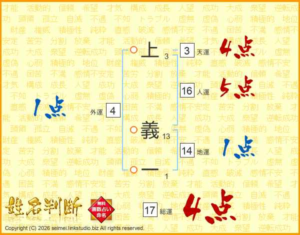 上義一さんの総運は17画の4点!