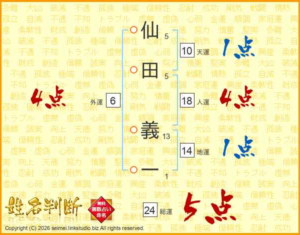 仙田義一さんの総運は24画の5点!