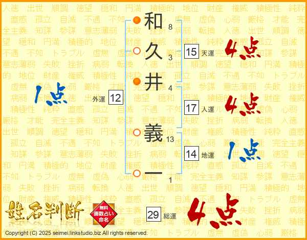 和久井義一さんの総運は29画の4点!
