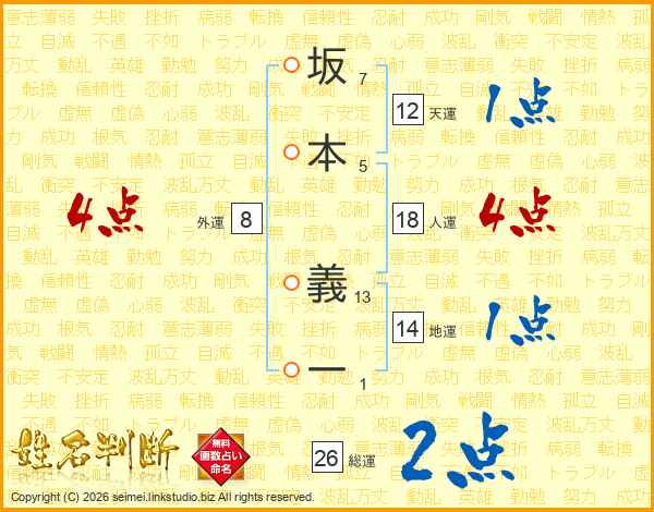 坂本義一さんの総運は26画の2点!