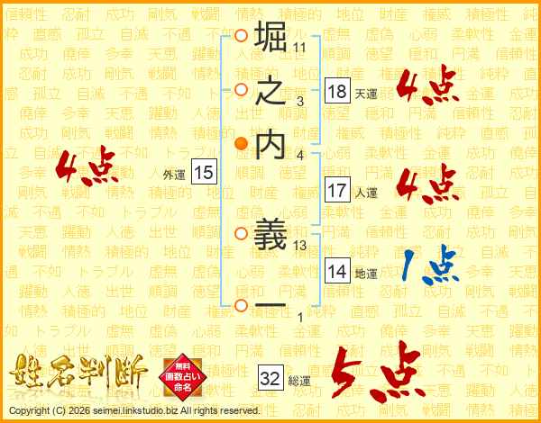 堀之内義一さんの総運は32画の5点!