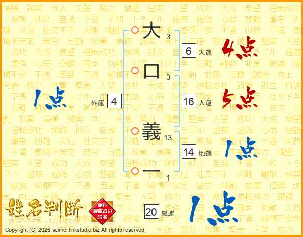 大口義一さんの総運は20画の1点!