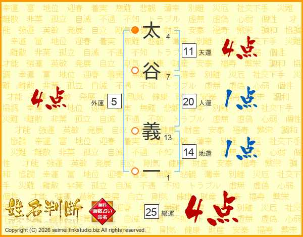太谷義一さんの総運は25画の4点!