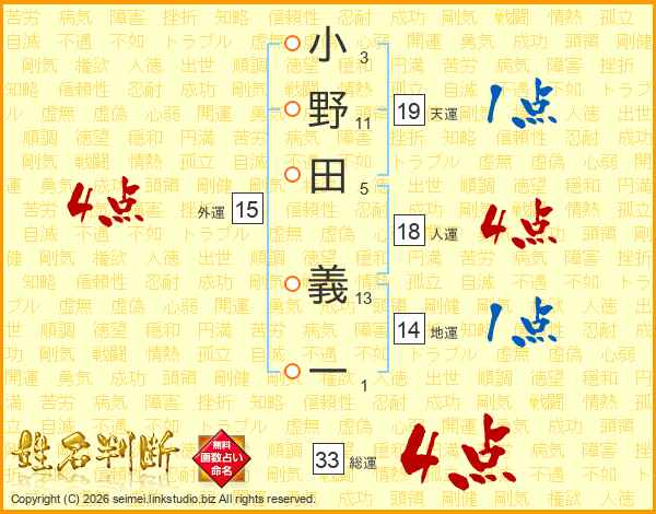 小野田義一さんの総運は33画の4点!