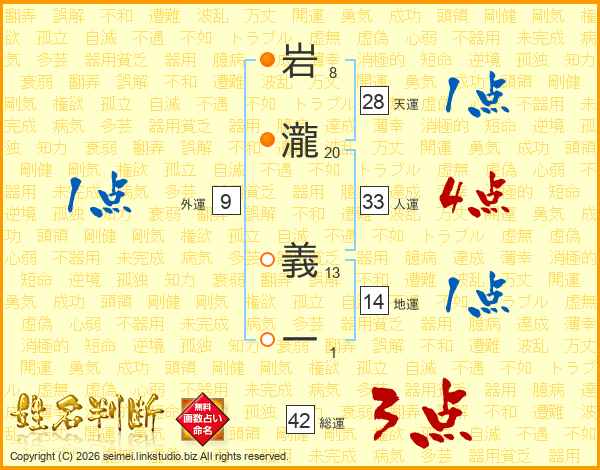 岩瀧義一さんの人運は33画の4点!