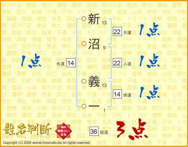 新沼義一さんの天運は22画の1点!