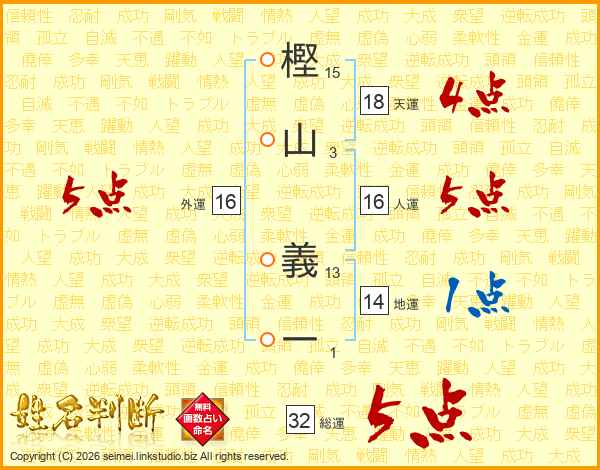 樫山義一さんの総運は32画の5点!