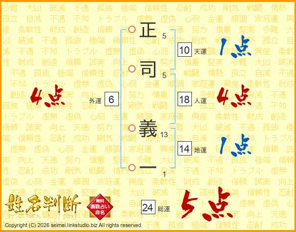 正司義一さんの総運は24画の5点!