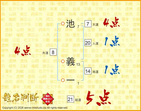 池義一さんの総運は21画の5点!