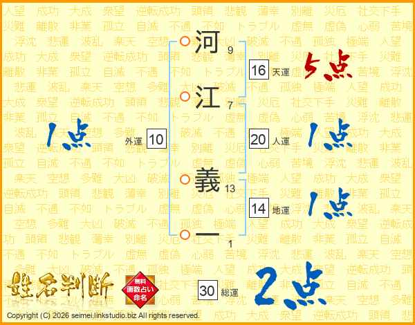 河江義一さんの総運は30画の2点!