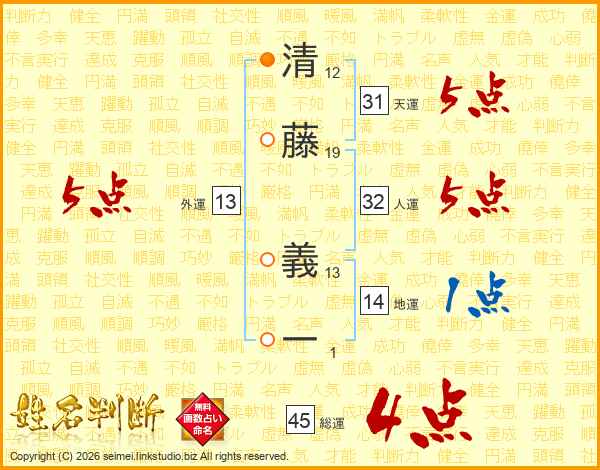 清藤義一さんの天運は31画の5点!