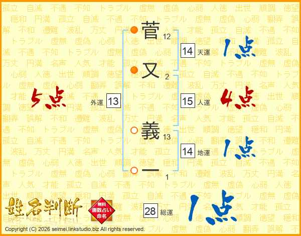 菅又義一さんの天運は14画の1点!