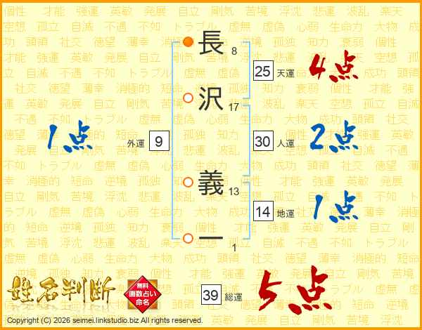 長沢義一さんの総運は39画の5点!