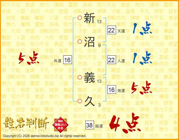 新沼義久さんの総運は38画の4点!