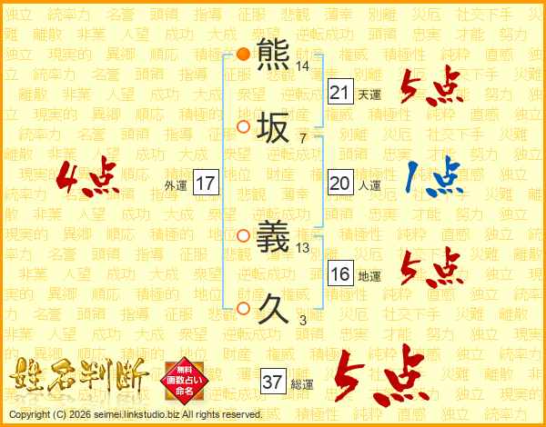 熊坂義久さんの総運は37画の5点!