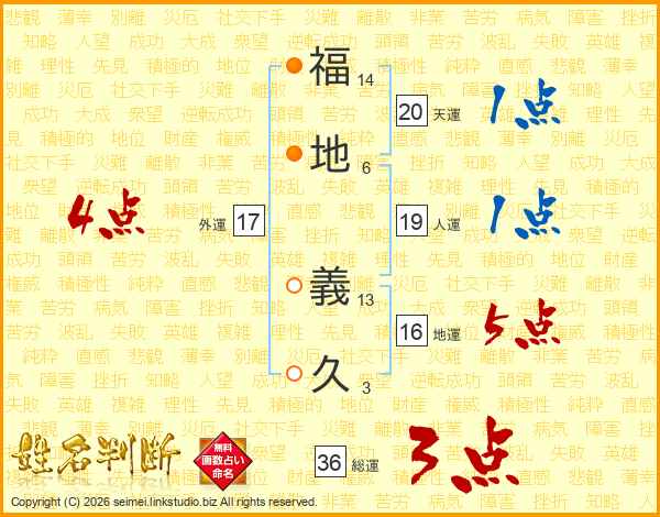 福(14画)地(6画) 義(13画)久(3画)