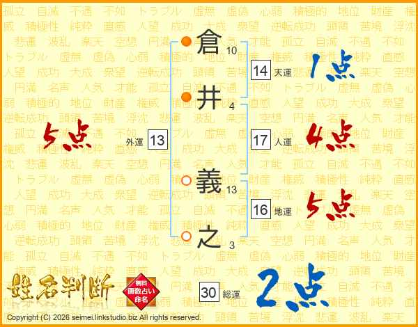 倉井義之さんの天運は14画の1点!