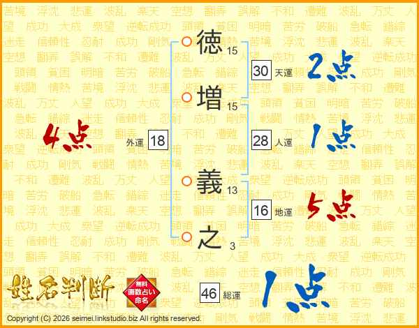 徳増義之さんの総運は46画の1点!