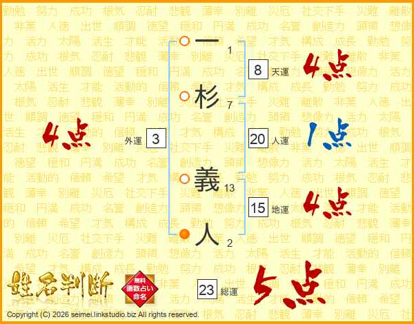 一杉義人さんの総運は23画の5点!
