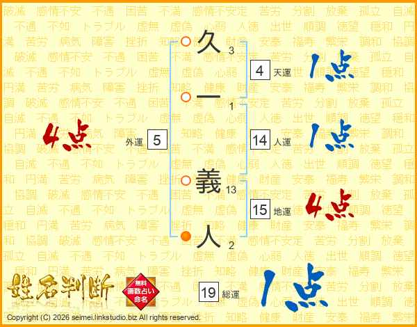 久一義人さんの総運は19画の1点!