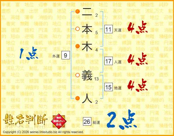 二本木義人さんの総運は26画の2点!