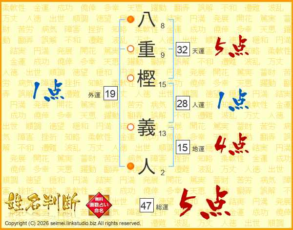 八重樫義人さんの総運は47画の5点!