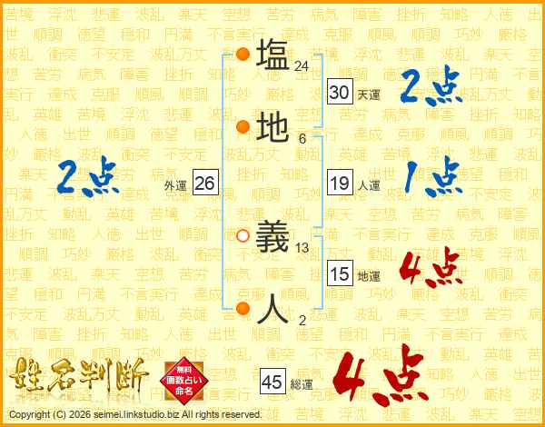 塩(24画)地(6画) 義(13画)人(2画)