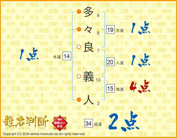 多々良義人さんの人運は20画の1点!