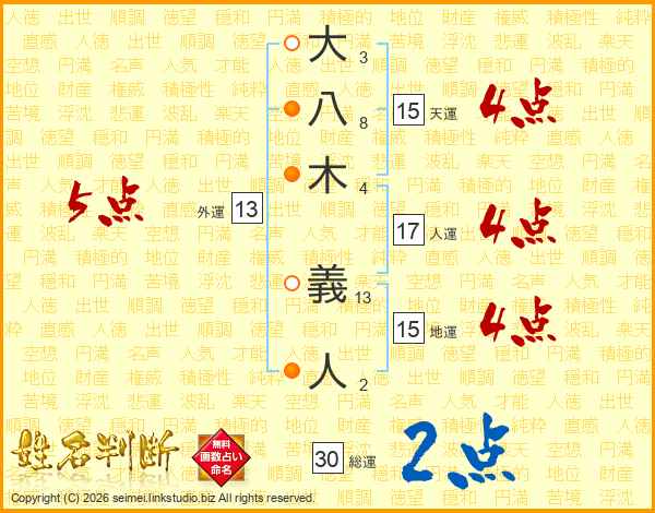 大八木義人さんの総運は30画の2点!