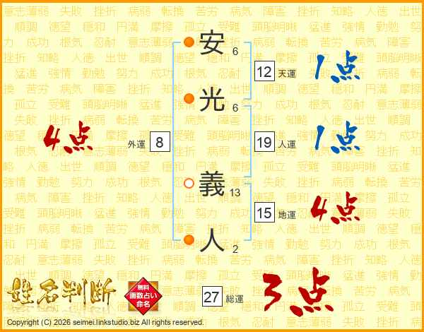 安(6画)光(6画) 義(13画)人(2画)